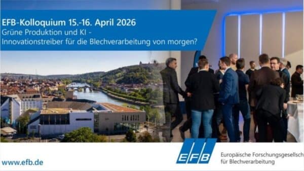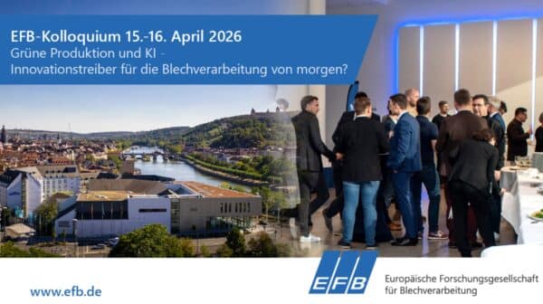10.3.2026 – Das 44. EFB-Kolloquium findet am 15. und 16. April 2026 unter der Überschrift „Grüne Produktion und KI – Innovationstreiber für die Blechverarbeitung von morgen?“ im Congress Center Würzburg statt. Das AIF-Mitglied Europäische Forschungsgesellschaft für Blechverarbeitung e.V. – EFB ist ein Expertennetzwerk, das Industrieforschung in Kooperation mit innovativen Unternehmen und Forschungseinrichtungen realisiert.